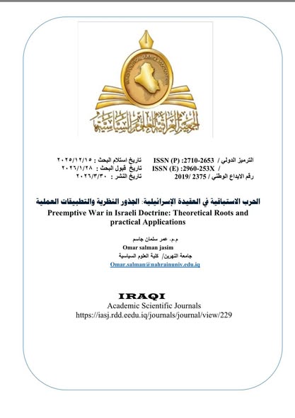 (Preemptive War in Israeli Doctrine: Theoretical Roots and Practical Applications). وذلك مجلة الجمعية العراقية للعلوم السياسية.