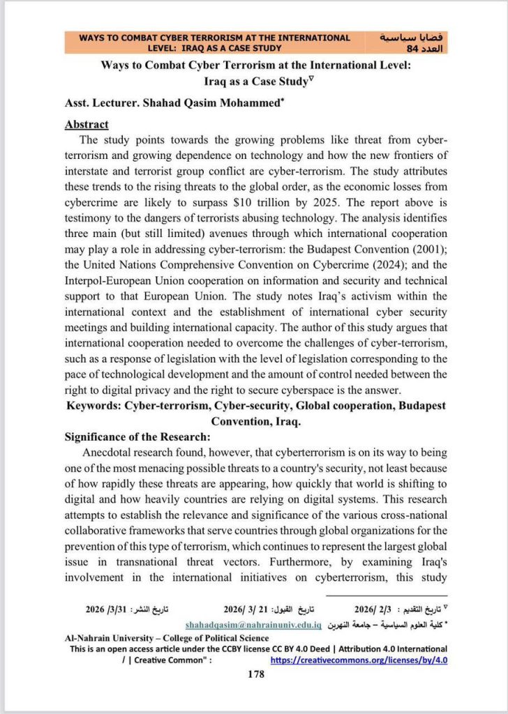 نشرت المدرس المساعد شهد قاسم محمد، التدريسية في كلية العلوم السياسية بجامعة […]