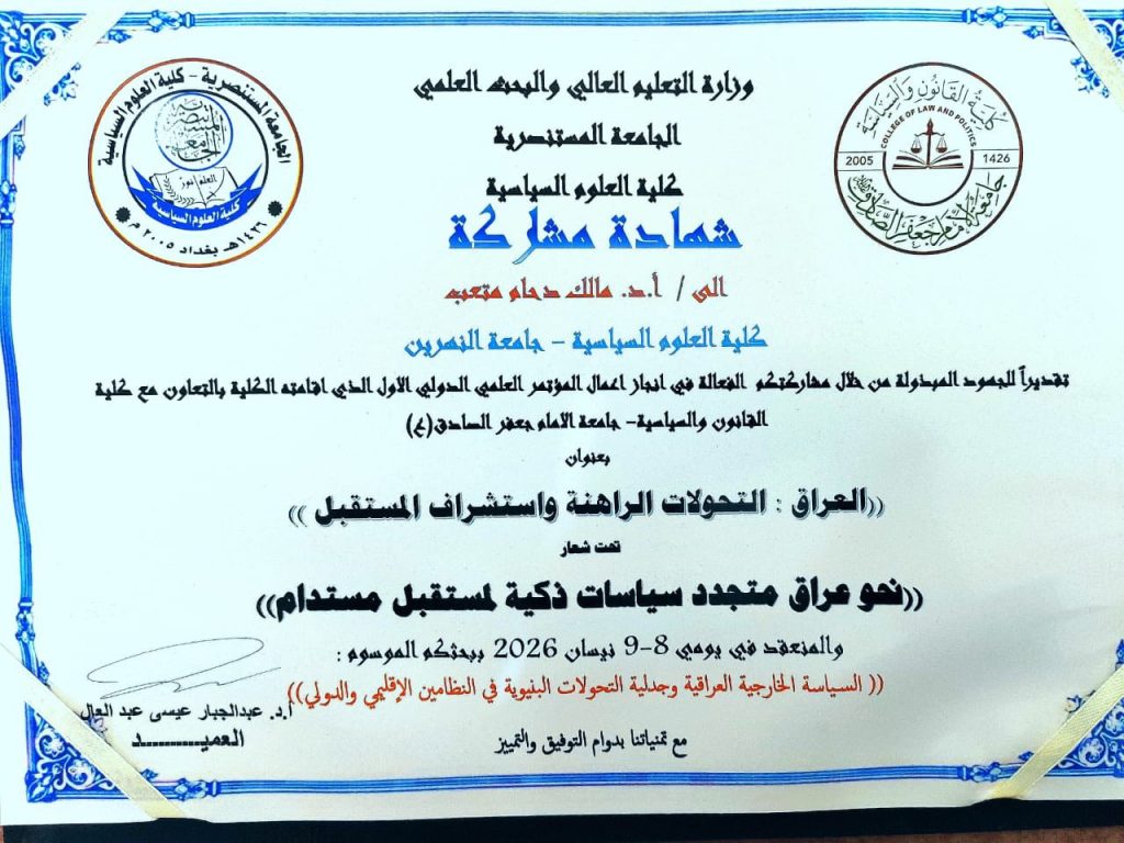 شارك الاستاذ الدكتور مالك دحام متعب، التدريسي في كلية العلوم السياسية بجامعة […]