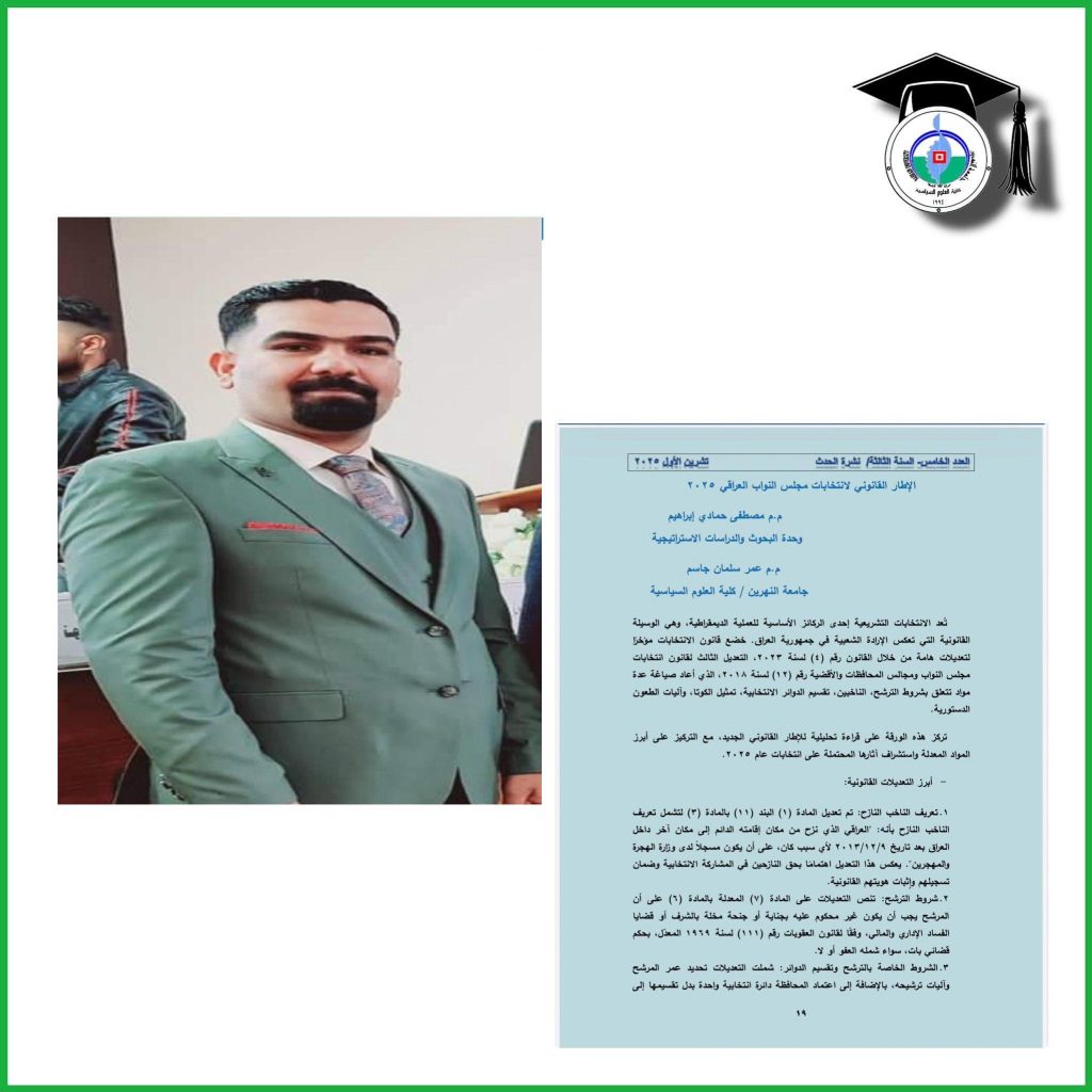 نشرَ التدريسي في كلية العلوم السياسية بجامعة النهرين المدرس المساعد عمر سلمان […]