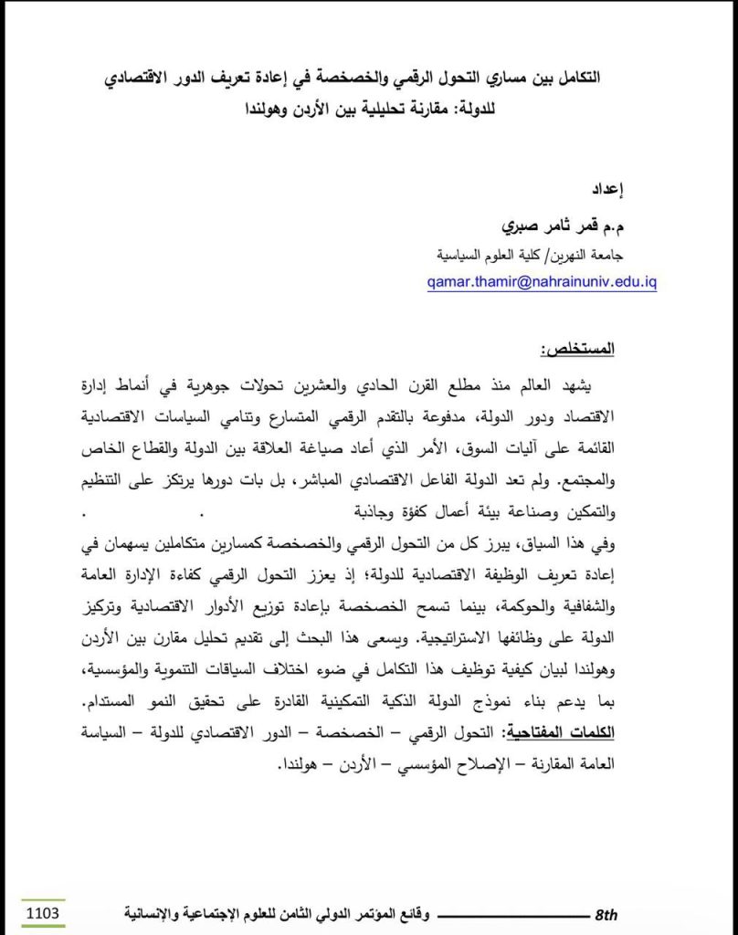 نشرت المدرس المساعد قمر ثامر صبري، التدريسية في كلية العلوم السياسية بجامعة […]