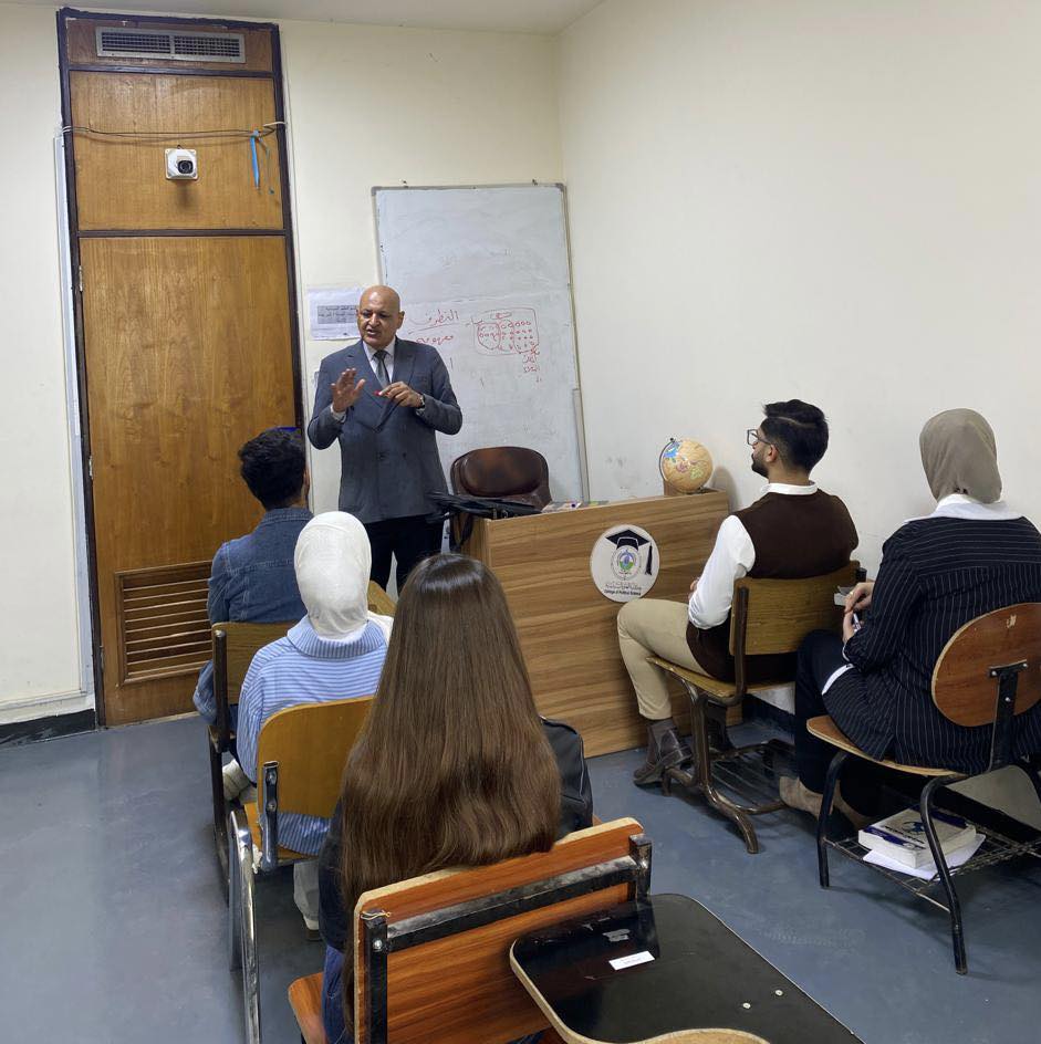 Under the sponsorship of the Dean of the College of Political Science, Al-Nahrain University, Prof. Dr. Osama Murtadha B. Al-Saeedi, and as part of the guidance and awareness lectures for early-stage students, Dr. Fallah Hassan Al-Manaa, lecturer at the college, presented a guidance lecture to second-stage students in the Political Systems and Public Policies Department.