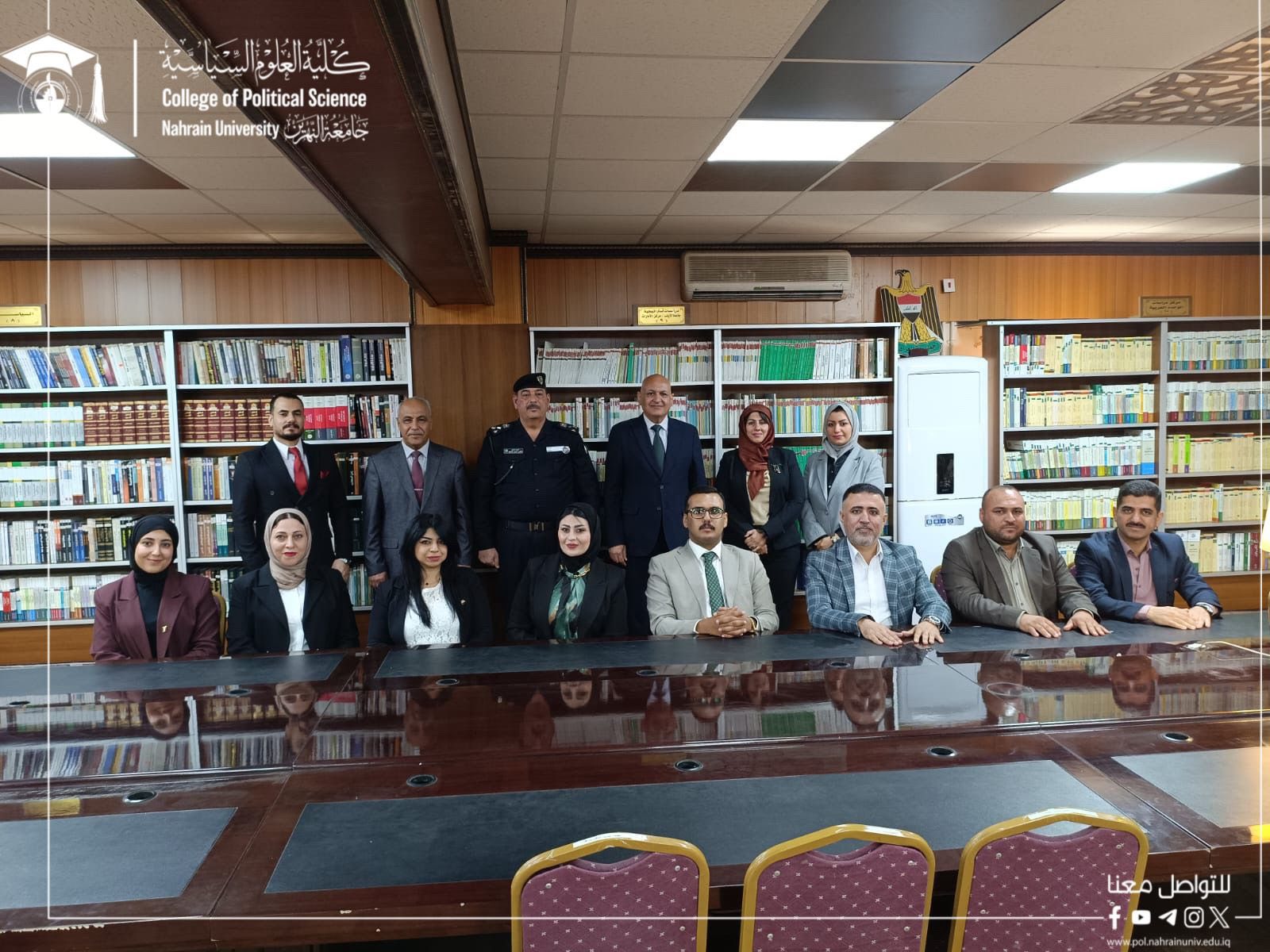 The Department of Political Systems and Public Policies at the College of Political Science, Al-Nahrain University, organized a field visit for PhD students to the Ministry of Interior, Higher Institute for Security and Administrative Development, as part of supporting the applied scientific path and enhancing integration between academic study and practical experience in security and administrative institutions.
